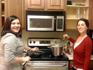 Dinner was all in all a success, if you take away the potential grease fire, the chocolate burning, and Gina’s oven somehow catching on fire. For dinner I made Smashed Red Potatoes, Stuffed Chicken and Grilled Asparagus. You can find all of these recipes on the my Recipe page. The potatoes are so easy and are great for dinner parties!