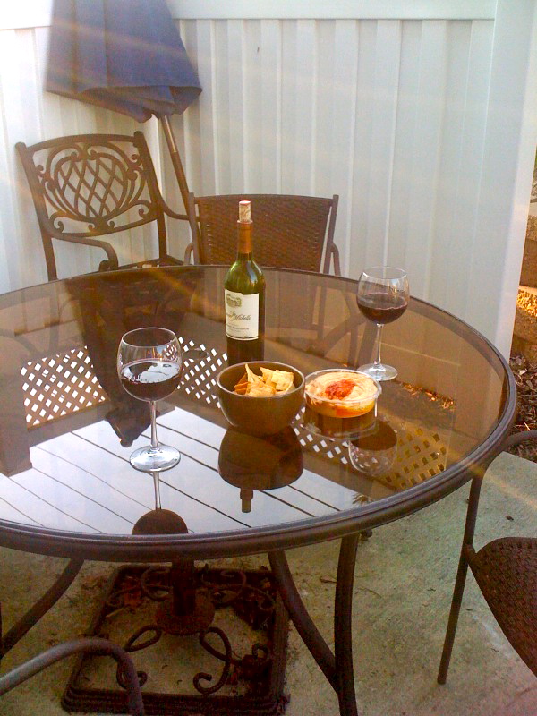 Having some wine before dinner and enjoying the spring weather!