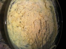 Scramble the eggs and add parsley and Parmesan. Add ricotta and mix well. Make sure mixture is thick. Set aside.