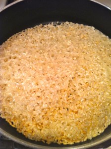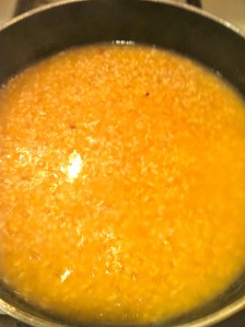 Continue this process with the water two more times. Remember to keep stirring. Once the rice is creamy, but still slightly firm, remove from heat.