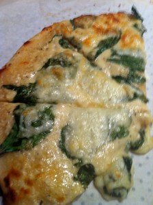 Follow the directions on the back of the Trader’s Joe dough package. Once the dough is ready and rolled out, spread the sauce from end to end (put as much as you would like). Sprinkle with the mozzarella cheese, add the spinach and mushrooms and put it in the oven! Yes, it really is that simple!