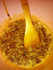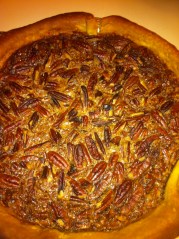 Be sure to take the pie out around 35 minutes when the crust is done. I had never made Pecan Pie before and didn’t know how the inside consistency was supposed to be, so I left the pie in a few minutes too long and the crust was a little burnt on the outside.