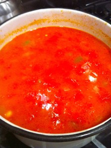 Stir in tomatoes and tortillas. Bring to a boil and add cumin, chili powder, garlic, pepper, and chicken stock. Return to a boil. Reduce heat. Add salt and cayenne pepper. Simmer 30 minutes. If you prefer a non-chunky soup, remove from pot and puree soup. (I didn’t do this, but think it’s a great idea!)