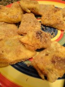 I had some food I needed to get rid of before the move and Nutella was one of the ingredients! I found the recipe on Our Best Bites and was excited to give it a try. I didn’t have all of the ingredients, but I had some things I thought would work as a substitute. They turned out pretty good once I got the frying thing down.
